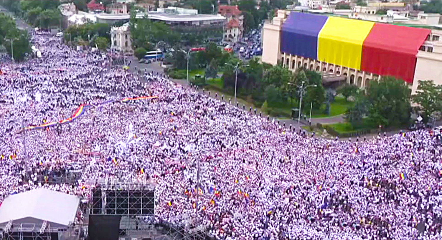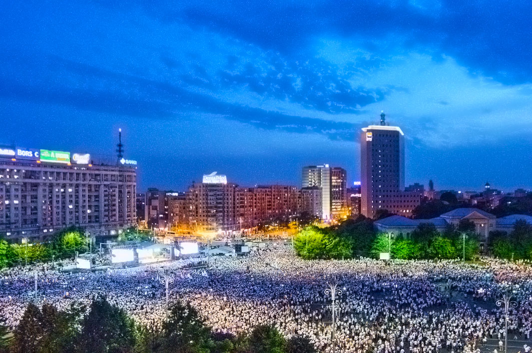Es ist Samstagabend, 9. Juni 2018. Die Sonne hat den ganzen Tag heiss auf der Piața Victoriei in Bukarest gebrannt. Hunderttausende von Menschen strömen auf den historischen Siegesplatz – und es werden immer mehr. Sie kommen aus allen Teilen Rumäniens zusammen mit einem Ziel: ihre Rechte und ihre Freiheit einzufordern. „Rumänien ist aus seinem Todesschlaf erwacht”, ruft der Präsident des rumänischen Parlaments, Liviu Dragnea, vor dem Victoria-Palast in Bukarest: Über 400 000 Rumänen versammeln sich an diesem Abend, um gegen den Parallelstaat, Überwachung und Missbrauch in der Justiz zu demonstrieren – „Vrem prosperitate, NU Securitate” – „Wir wollen Fortschritt, NICHT Securitate”.
