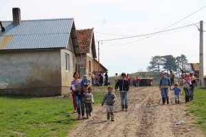 Begleitet von Nadia Gavrila (OvidiuRo) und Bürgermeister László Kovács (Araci -Vâlcele), kommen wir nach Hetea – einer kleinen Roma-Siedlung im Kreis Covasna. Hier leben vielleicht siebzig Familien mit dreimal so vielen Kindern. Die Kinder sehen und folgen uns. Von überall her laufen sie zusammen. Sie kichern und wollen uns berühren. Sie haben grosse Augen voller Fragen: “Wer wir sind?”, wollen sie wissen.
